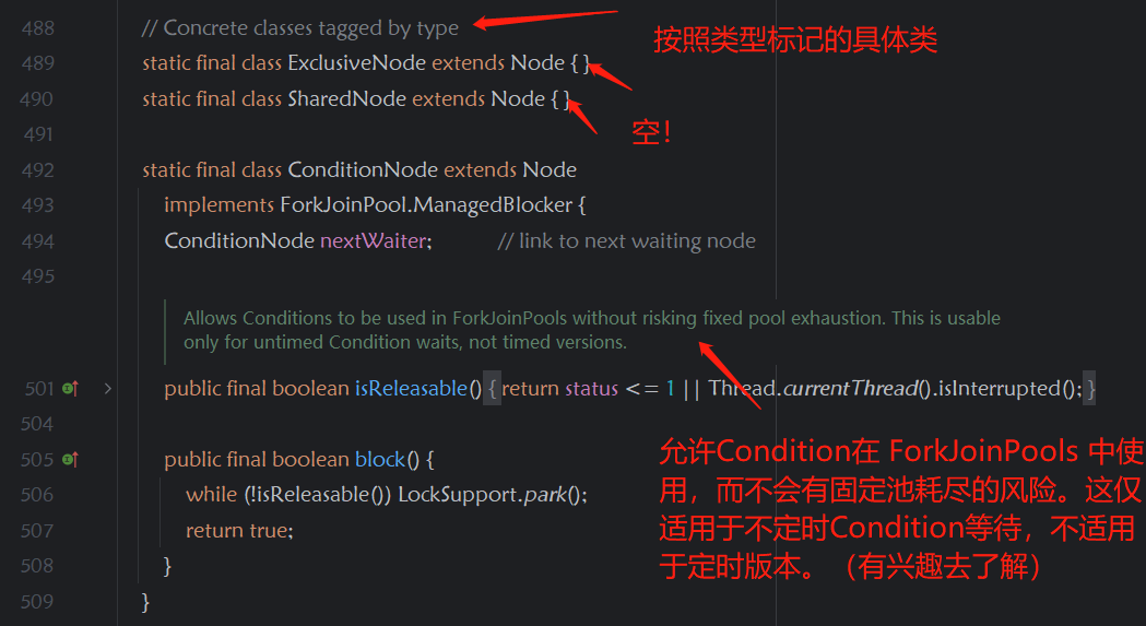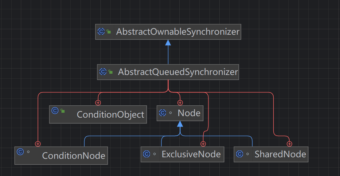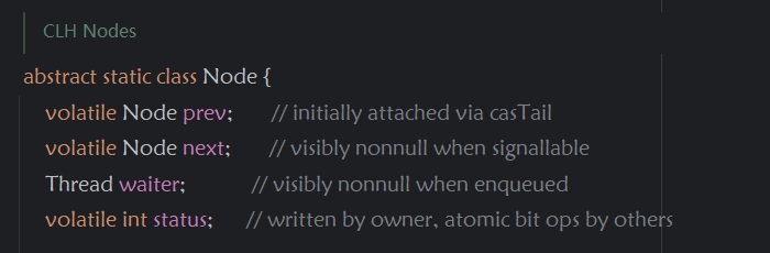 通过Node节点维护一个双向链表,其中子类又有独占节点、共享节点、条件节点(作为标识类)