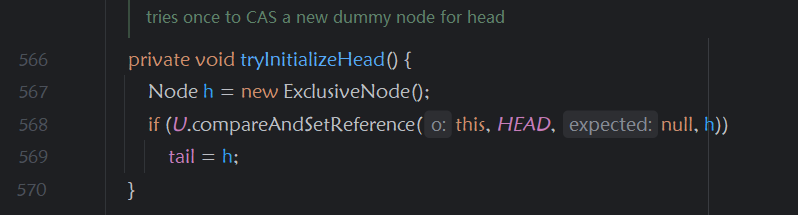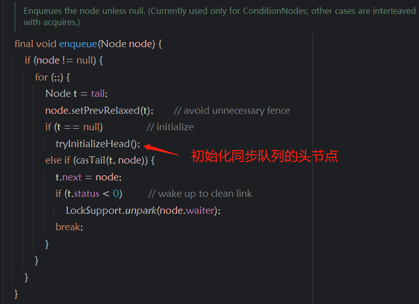 在代码中的使用:当有线程占用锁时,后面的线程开始进入队列,队列采用来加载的方式,当有线程需要排队时,开始初始化队列