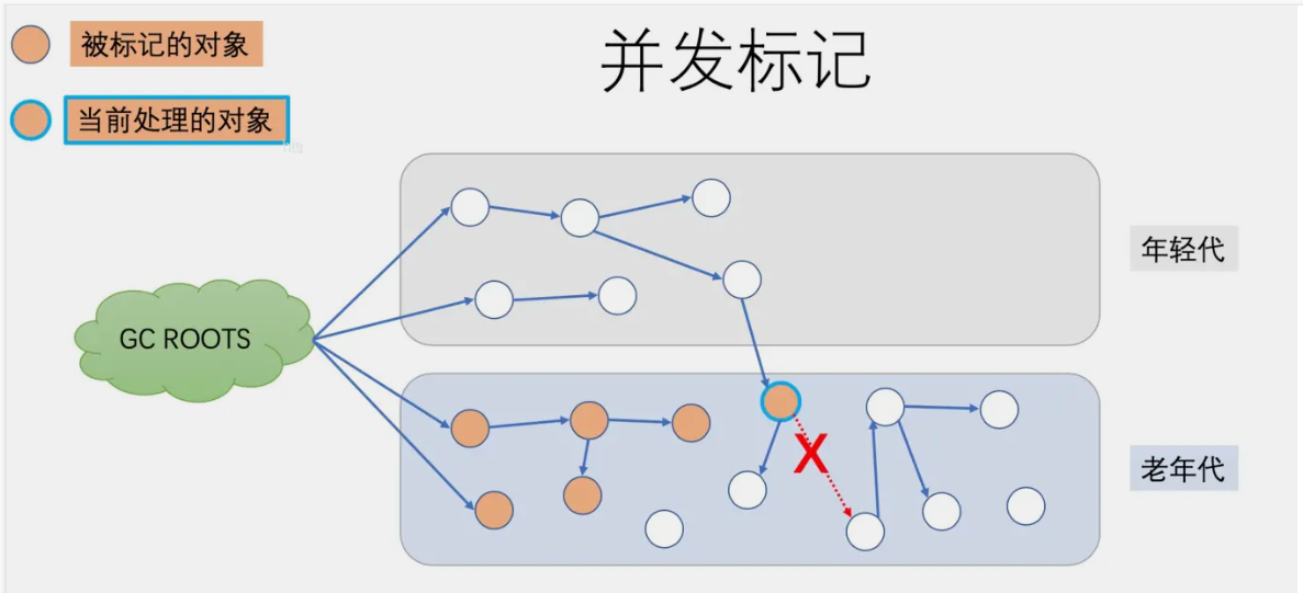 在上边的图中,“当前处理的对象”的一个引用就被应用线程给断开了,即这个部分的对象关系发生了变化