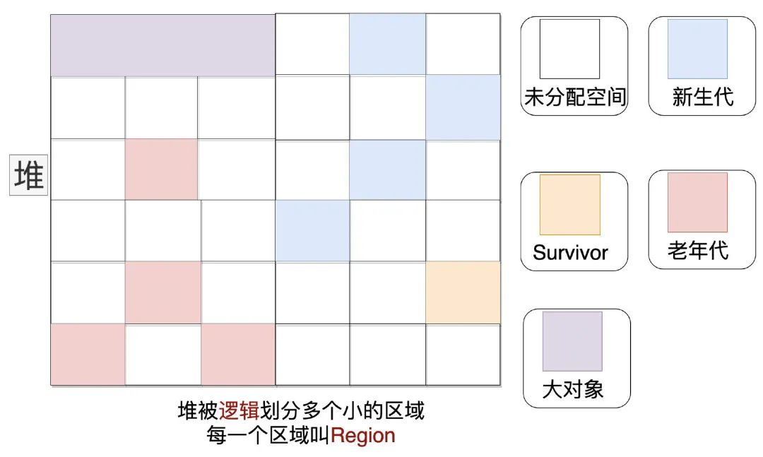 定义: 将Java堆划分为多个大小相等的Region,每个Region都可以是新生代、老年代。G1收集器根据角色的不同采用不同的策略去处理 大小: 2 的N次幂,1MB~32MB