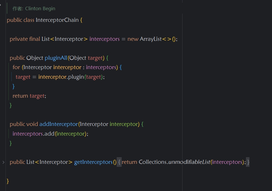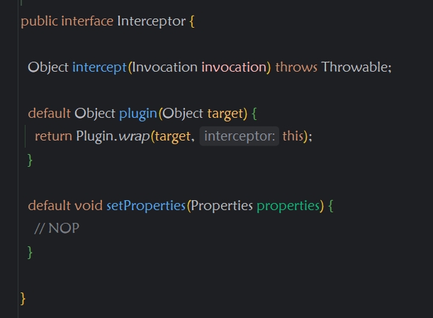 遍历下一个interceptor,再给target加上一个插件-->interceptor2(interceptor1(target))以此类推