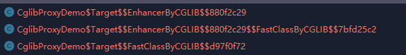 我们看到生成了三个类,而其中第一个是cglib为我们生成的增强类——没错,增强类也是cglib动态生成的。而后两个类就都是FastClass的实现类了——和刚刚的FastClassInfo 中有两个FastClass似乎对应上了?