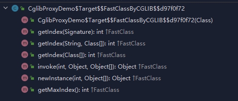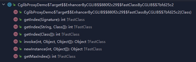 这么说来FastClass 可以视为一个工具类,让我们基于方法签名查找方法索引,再让FastClass 来基于索引调用原方法。